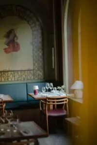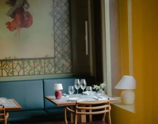 Restauranten er indrettet i en historisk bygning fra 1848, oprindeligt en konditori, der har bevaret sine originale detaljer som vægmalerier og stuklofter. Denne unikke atmosfære skaber en særlig oplevelse for gæsterne, hvor fortidens elegance møder nutidens kulinariske kreativitet.