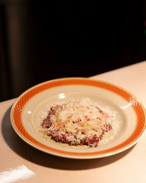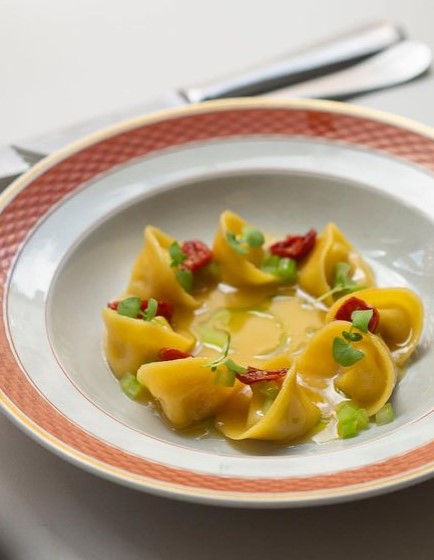 Hovedretterne byder for eksempel på spaghettoni med knivmuslinger og vongole, risotto med rødbede og gorgonzola, samt cappelleti tre carne med jus og kyllingehjerte.