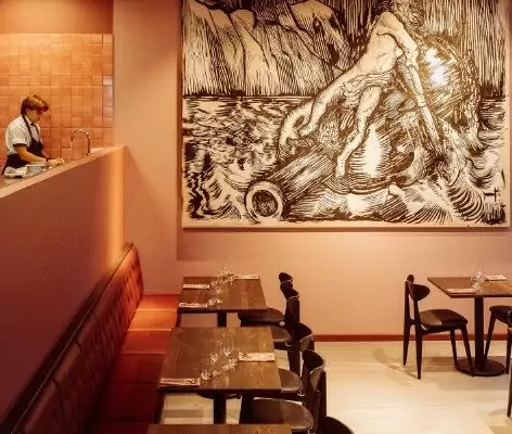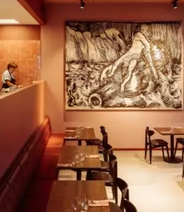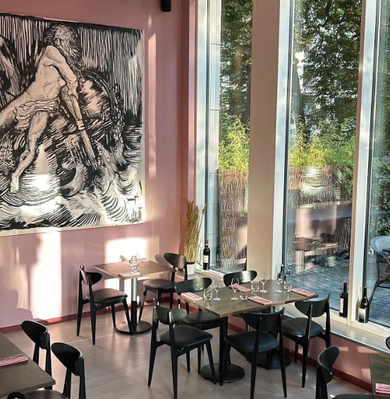 Akustikken er nøje tænkt ind i designet med brugen af lydabsorberende materialer, hvilket sikrer en behagelig lydoplevelse, selv når restauranten er fyldt.