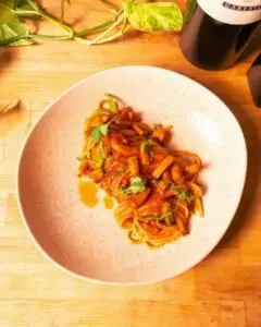 Menuen byder på en række delikate pastaretter, hvor hver enkelt ingrediens er nøje udvalgt for at sikre den højeste kvalitet. Råvarerne hentes fra lokale leverandører, mens specialiteter og vine importeres direkte fra Italien, hvilket sikrer en autentisk smagsoplevelse.