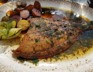 Gæster kan for eksempel nyde en lækker laksemousse eller en hummerbisque som forret. Til hovedret tilbyder restauranten blandt andet forskellige fiskeretter, der kombinerer det bedste fra det danske og internationale køkken.
