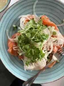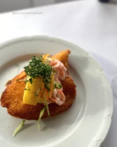 Forretterne kan eksempelvis inkludere en delikat hjemmerøget laks serveret med friske urter og sprøde elementer, der tilføjer tekstur og dybde. Hovedretterne spænder fra møre stykker oksemørbrad akkompagneret af sæsonens grøntsager og en fyldig rødvinssauce, til vegetariske retter, hvor grøntsagerne får lov at spille hovedrollen.