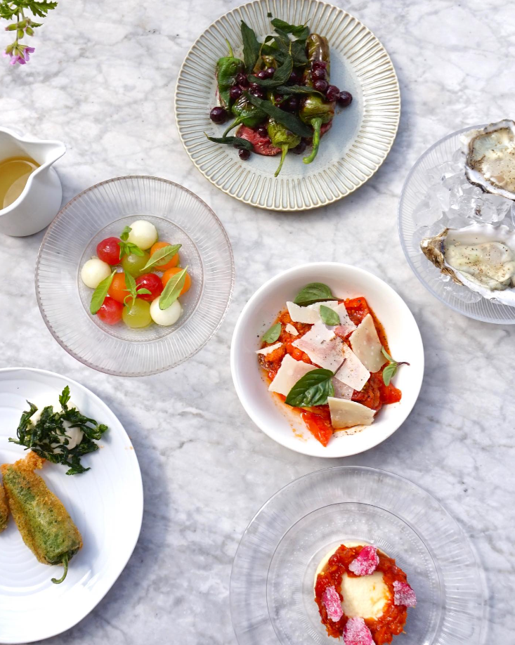 Menuen byder på små deleretter, perfekt til at dele, samt frisk fisk og skaldyr tilberedt på grillen. For eksempel kan du nyde en hummer-ravioli med kartoffel og blanquette-sauce eller en ceviche af sandart med agurk og jalapeños.