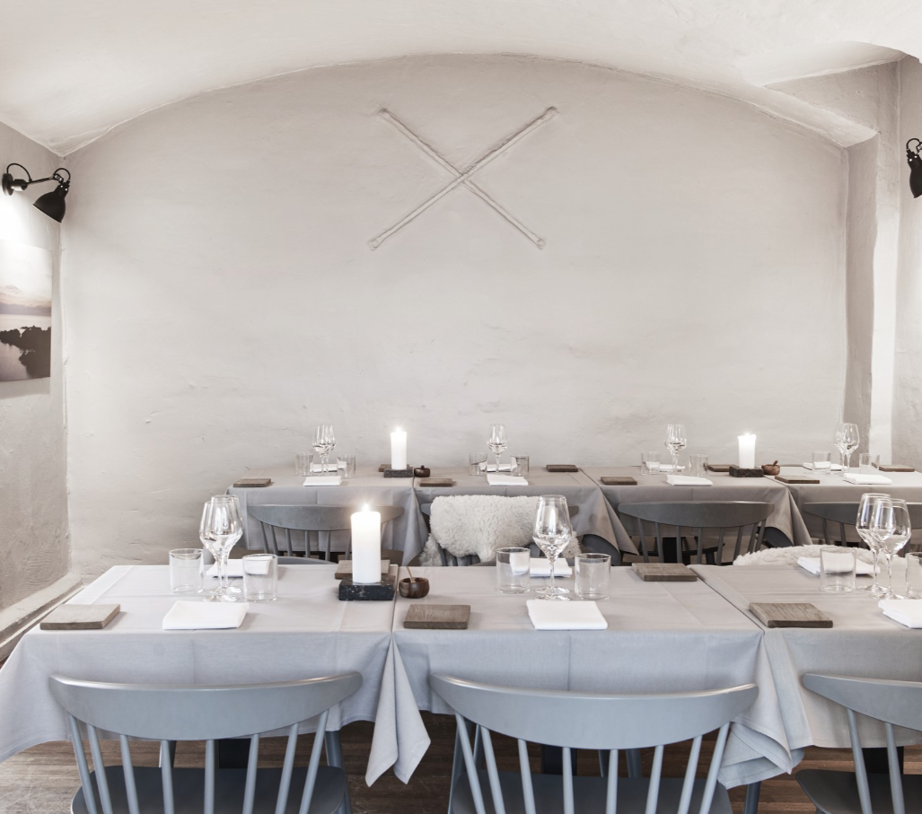 Menukortet er sæsonbetonet og byder på moderne fortolkninger af klassiske danske retter, tilberedt med friske råvarer fra Bornholm. Indretningen er inspireret af de ikoniske bornholmske rundkirker, med hvidkalkede buer og hvælvinger, der skaber en lys og indbydende atmosfære.