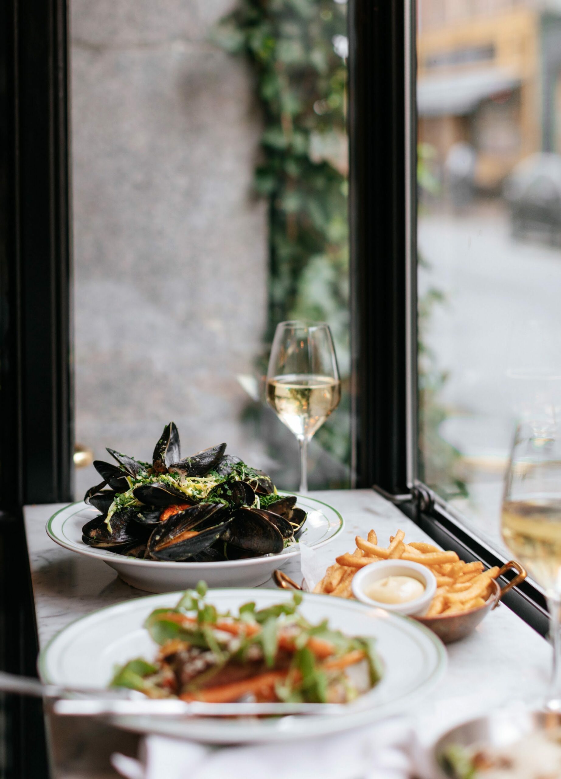 Maden på Les Trois Cochons bygger på en velafprøvet skabelon, men det er netop her, dens styrke ligger. Køkkenet forsøger ikke at genopfinde den franske bistrotradition – det genbesøger den med præcision, respekt og en tydelig fornemmelse for, hvornår der skal justeres og hvornår der skal holdes fast. Menuen skifter med sæsonerne, men bærer altid præg af de klassiske retter: confit de canard, moules marinières, tatar, steak frites. Det er mad, der ikke undskylder sit udgangspunkt, men heller ikke står stille i det.