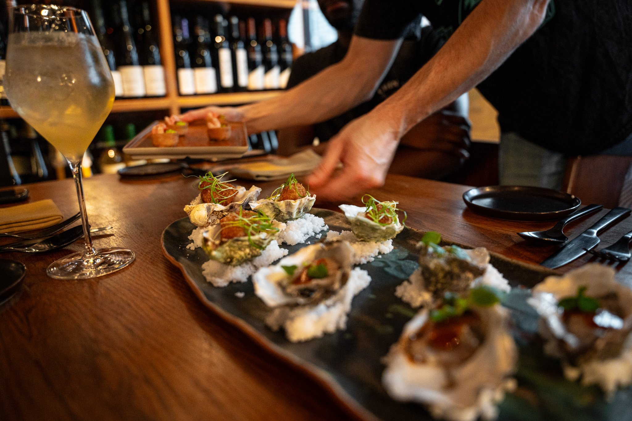 Barområdet er et centralt element i restauranten, hvor gæster kan nyde et bredt udvalg af cocktails og vine. Den åbne bar inviterer til samtale og socialt samvær, hvilket gør det til et ideelt sted at starte eller afslutte aftenen. Personalet er kendt for deres venlige og opmærksomme service, hvilket bidrager til den hjemlige følelse og får gæsterne til at føle sig velkomne.