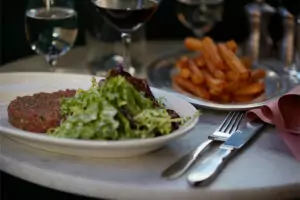 Der er også tænkt på vegetarerne. Grøntsagsretterne er kreative fx den grillede porre med ristet hasselnød, brunet smør og citron. Det er comfort food på fransk midt på Vesterbro.