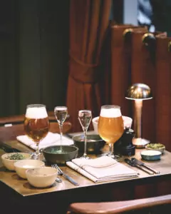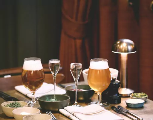 Restauranten har også et imponerende udvalg af vine, øl og akvavit, der perfekt supplerer maden.