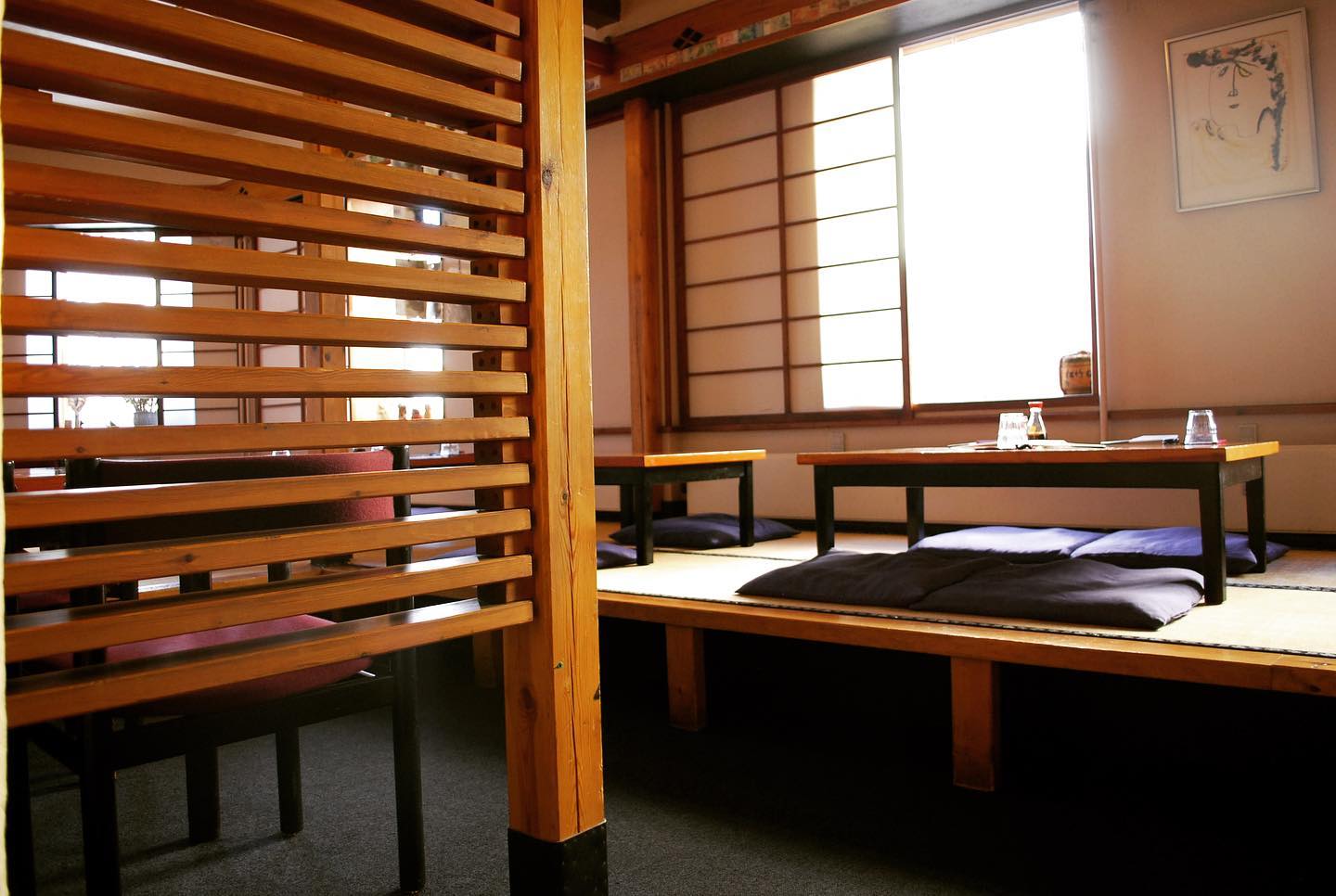 Restauranten tilbyder traditionelle siddepladser på tatamimåtter, hvilket giver gæsterne en autentisk oplevelse af japansk kultur. Denne siddeform skaber en intim og hyggelig stemning, hvor man som gæst føler sig tættere på både maden og selskabet. ​