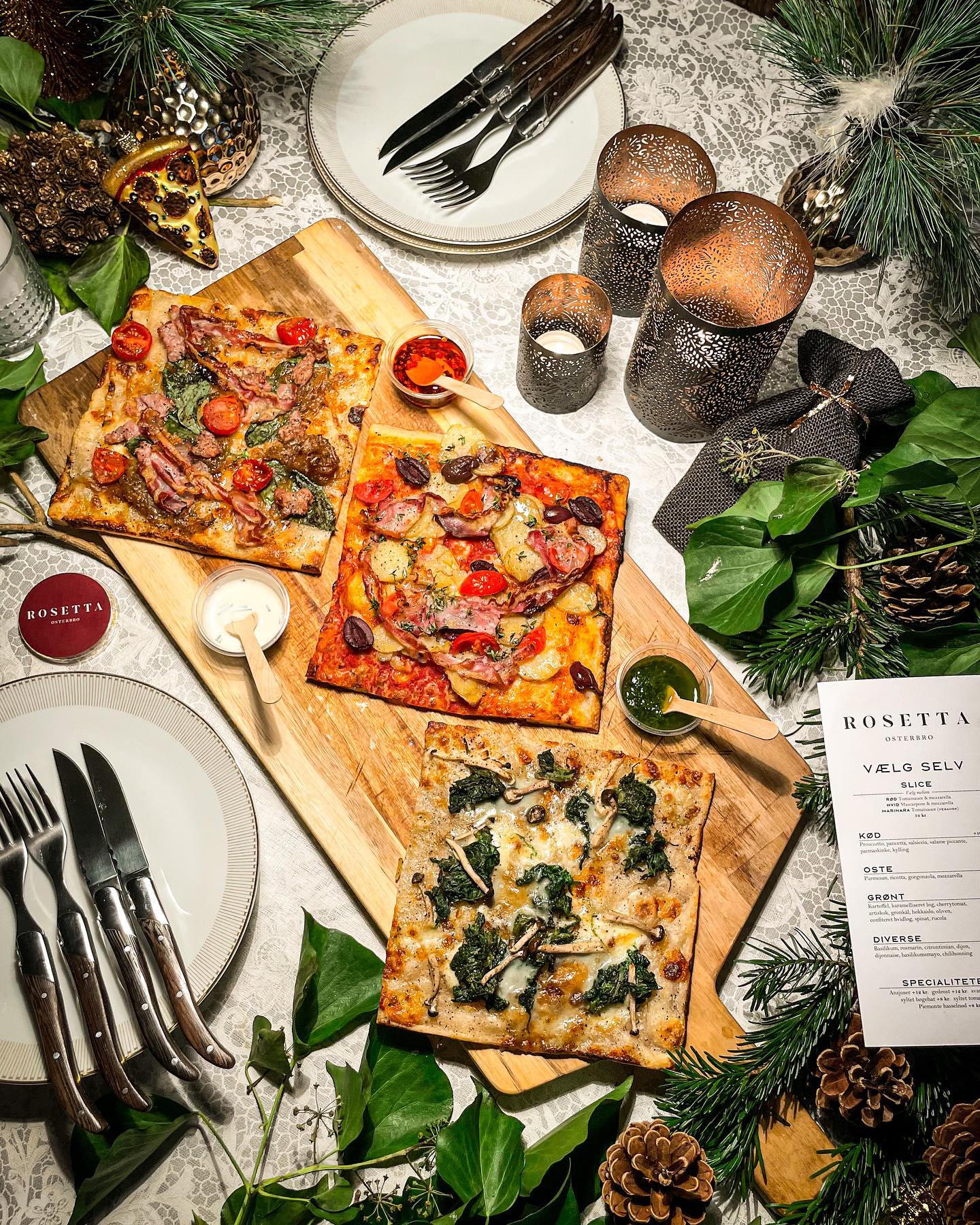 Rosetta muligheden for at vælge mellem forskellige pizzabunde såsom klassisk rød tomatsauce med mozzarella eller en unik hvid mascarpone pizza for en mere cremet oplevelse. Deres signaturretter inkluderer “Coppa Bianca”, med rig smag fra coppa, svampe og en syrlig sødme fra chilihonning. “Zucca Rosso” er det perfekte valg for dem, der ønsker lidt mere grønt, med græskar og parmesan, der topper denne lækre vegetariske variant.
