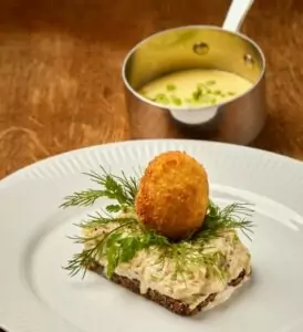 Et besøg her uden at smage deres signaturretter ville være en skam, men deres udvalg af smørrebrød er også en sand fornøjelse.