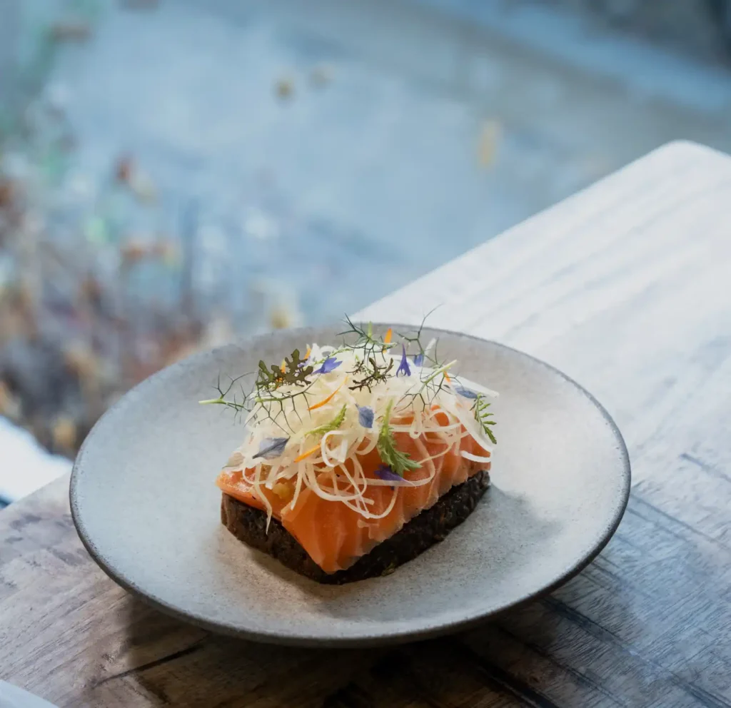 Menuen ændrer sig i takt med sæsonerne, hvilket sikrer, at råvarerne altid er friske og i deres bedste form. Du kan vælge mellem à la carte eller en kurateret smagsmenu med 5 eller 7 serveringer, hvor køkkenet tager dig med på en kulinarisk rejse gennem deres fortolkning af smørrebrød.