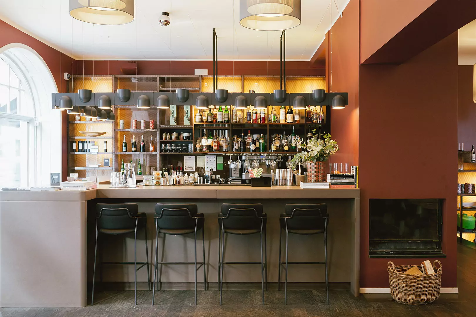 Sticks’n’Sushi på Frederiksberg tilbyder en indbydende atmosfære, hvor moderne design møder historiske elementer. Den store spejlvæg i restauranten reflekterer både bartendernes cocktailmixing og den livlige gade udenfor, hvilket skaber en dynamisk stemning.