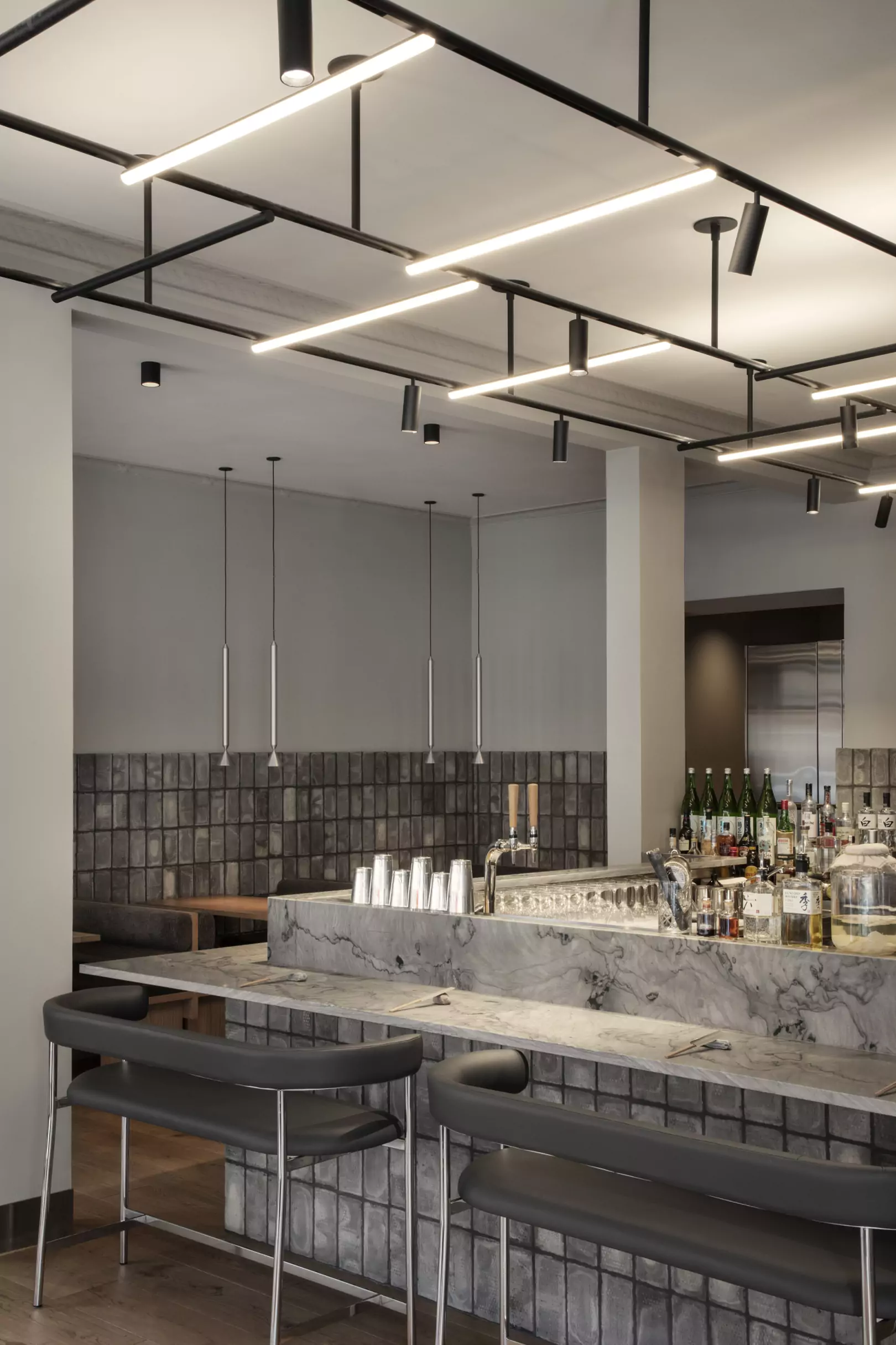 Inspirationen bag den nye indretning kommer direkte fra Vesterbro-kvarteret og dets solidaritet og lokalt fællesskab krydret med japansk og dansk design. Det rå, men raffinerede interiør afspejler den dynamiske stemning, der kendetegner Vesterbro. Og i centrum af det hele finder du en imponerende cocktailbar, der forbinder restauranten og inviterer gæsterne til at nyde både japanske delikatesser og skandinaviske rødder.