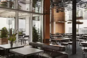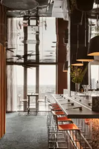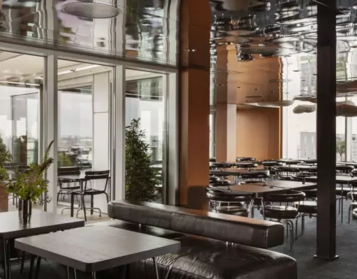 Restauranten på 12. etage tilbyder en unik og elegant spiseoplevelse i hjertet af København. Med et moderne design, fra de svævende lamper til de skarpe linjer, skaber denne restaurant en sofistikeret atmosfære.