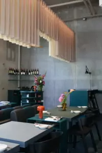 Lokalerne er indrettet med stilfulde beton- og stålelementer, der skaber en moderne og behagelig atmosfære. Stemningen er afslappet og uformel, hvilket gør det til et ideelt sted for både familier, venner og kolleger. Personalet er imødekommende og sørger for, at gæsterne føler sig velkomne fra det øjeblik, de træder ind.