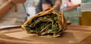 Hos Strutto er crescia sfogliata d’Urbino ikke blot en specialitet – det er selve omdrejningspunktet for hele menukortet. Denne lagdelte, smørholdige fladbrødsvariant fra Marche-regionen i Italien adskiller sig fra den mere kendte piadina ved sin sprøde og let flagede struktur. Dejen rulles ud i tynde lag, smøres med svinefedt (strutto) og foldes, hvilket giver en kompleks tekstur og en rig smag.