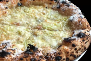 Menuen byder på både klassiske og mere eksperimenterende pizzaer. Den enkle Marinara med Siccagno-tomatsauce, hvidløg og oregano fremhæver de rene smage, mens Rianata-pizzaen med ansjos, rødløg og pecorino tilbyder en mere intens smagsoplevelse. For dem, der ønsker noget anderledes, er der også pizzaer med blå østershatte, buffalo mozzarella og friske urter.