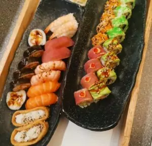 Vegetarer kan glæde sig over retter som Veggi Roll og Veggi Don, der byder på ingredienser som inari, avocado og lotus chips.