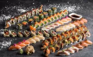 Menukortet rummer alt fra klassisk nigiri med laks, tun og kammusling, maki-ruller med tempura, avocado, sesam og flammegrillet fisk, og enkelte håndruller, der skifter med sæsonen. Der er også mulighed for at vælge en af de færdigsammensatte bokse, som giver et hurtigt overblik og en komplet oplevelse – særligt når tiden er knap, men man ikke vil gå på kompromis.