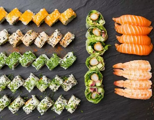 Frisklavet sushi og wokretter