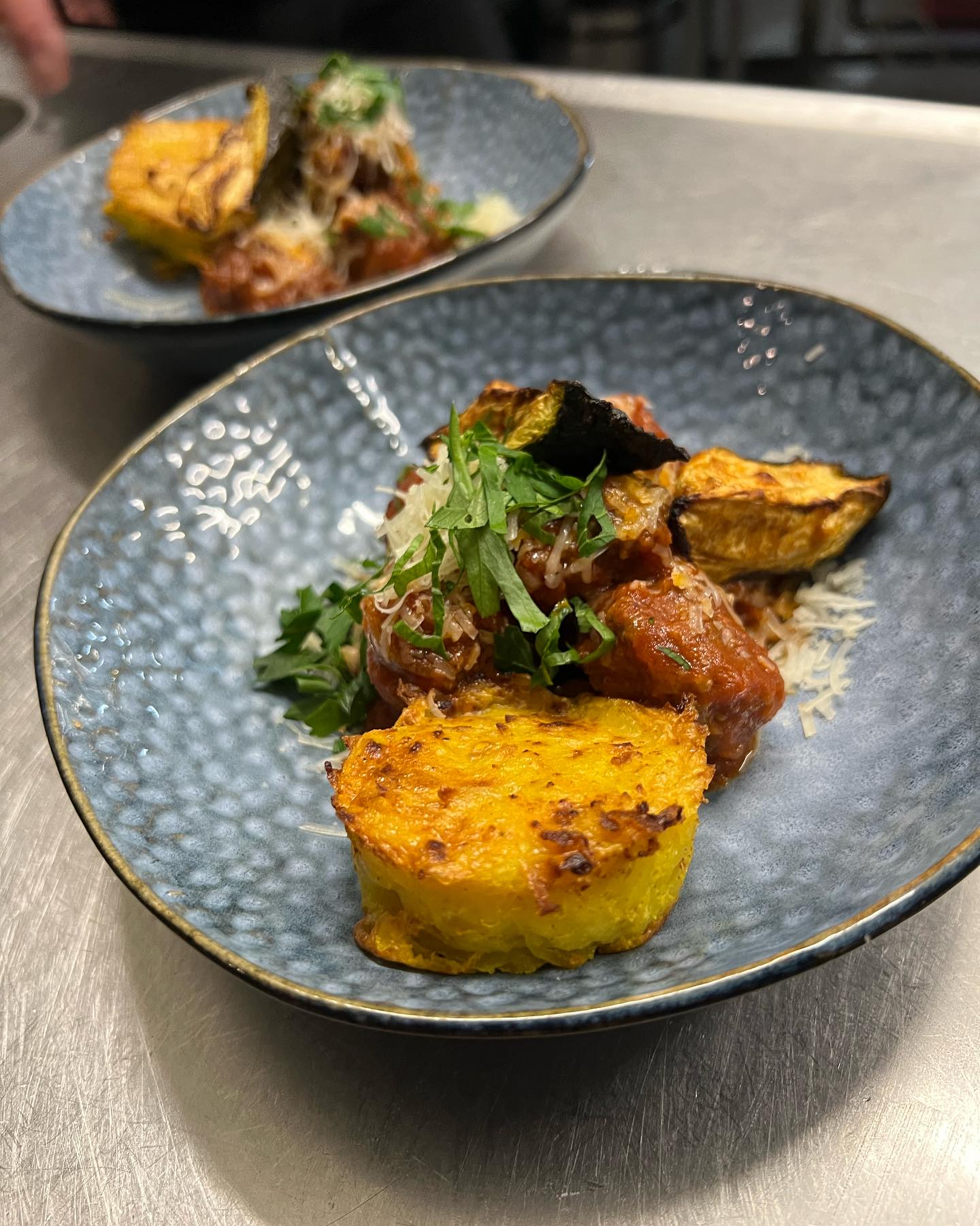 Hovedretterne byder på retter som kalvefilet med marineret pære og ristede frø, kyllingelår uden ben med svampe i balsamico og pimento, kartoffeltortilla med røget paprika-aioli, og croquettas med oksekød og bechamel serveret med persillerødder og courgetter.