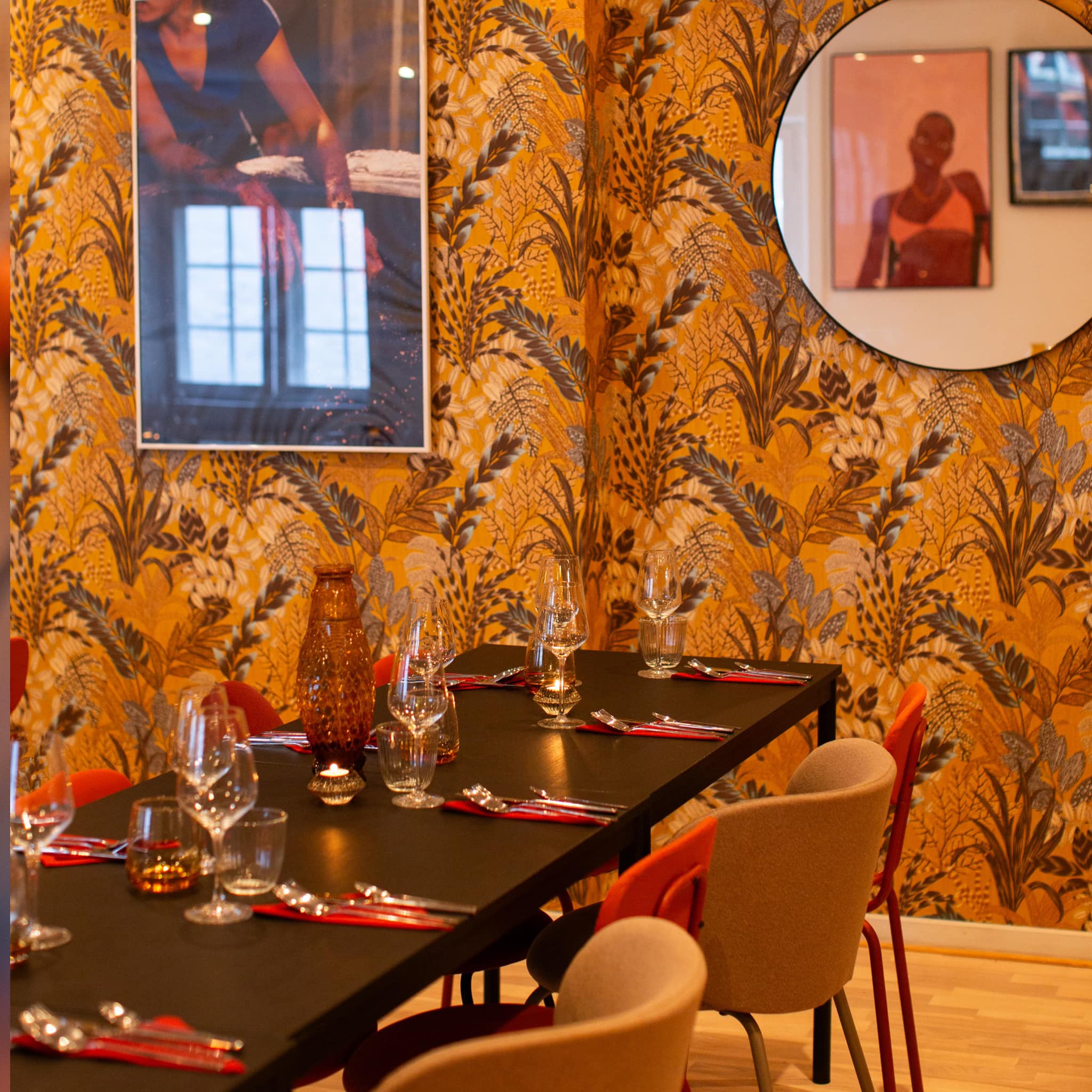 Indretningen kombinerer farverige elementer og kunstværker, der hylder Caribiens rige kulturarv. Dette skaber en levende og indbydende stemning, hvor gæsterne kan føle sig hjemme. Den hollandsk-caribiske chef, kunstner og kreative entreprenør Jamain Brigitha står bag konceptet og bringer sin kulinariske arv ind i hver detalje.