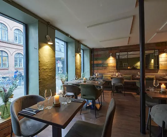Restaurantens indretning er en perfekt afspejling af den mad, der serveres her. Det er en fusion af moderne og klassiske elementer, ligesom retterne. Der er en tydelig passion hos kokkene, der har skabt en menu, hvor alt fra forret til dessert forkæler sanserne. Hver ret er præsenteret med omhu og skaber en nydelse for øjet, før den første bid tages. Det varme og indbydende interiør giver en følelse af hjemlighed, samtidig med at det lover en luksuriøs madoplevelse.
