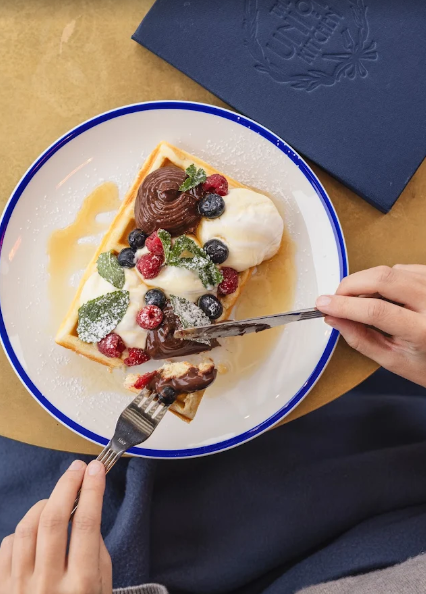 The Union Kitchen på Østerbro i København tilbyder en varieret menu, der tilfredsstiller enhver smag. Deres brunchplatte er en overdådig start på dagen og inkluderer økologisk røræg med purløg, pølser, bacon, røget laks, vesterhavsost, avocado og feta på rugbrød, græsk yoghurt med granola og rabarberkompot samt en vaffel med hjemmelavet chokoladesauce og friske bær.