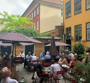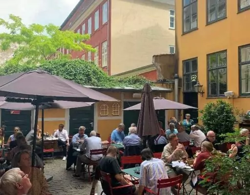 Udenfor finder man en vidunderlig gårdhave, der tilbyder en forfriskende kontrast til byens travlhed. Denne udendørs terrasse er særligt populær på solrige dage, hvor gæsterne kan nyde deres måltid i det fri.