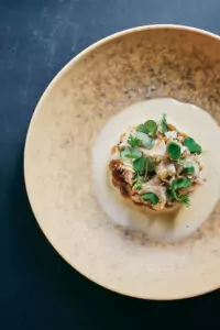Menuen skifter løbende og efter sæson, hvilket sikrer, at retterne altid er friske og aktuelle. Der lægges vægt på at bruge råvarer fra små danske producenter, hvor bæredygtighed og respekt for naturen er i fokus. Dette engagement i lokale og bæredygtige ingredienser sikrer ikke kun en høj kvalitet, men understøtter også en ansvarlig tilgang til gastronomi.