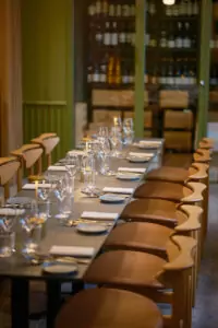 Musikken er højere end på traditionelle gourmetrestauranter, og der er ingen stivede duge på bordene, hvilket bidrager til en afslappet og imødekommende oplevelse.