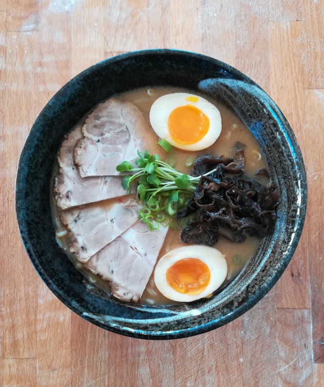 Menuen tilbyder et udvalg af forskellige ramens, som spænder fra den klassiske Shoyu Ramen med en intens sojasauce-bouillon til den mere cremede Tonkotsu Ramen, hvor den kraftige svinebensuppe er kogt så længe, at den får en smøragtig konsistens.