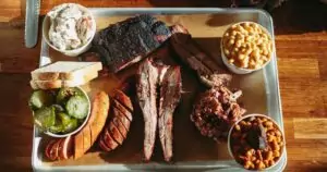 Her bliver kød behandlet med respekt, røget langsomt over træ og serveret uden unødvendige dikkedarer. Brisket, ribs og hot links ligger side om side på bakkerne akkompagneret af cremet mac and cheese, sprøde pickles og frisk coleslaw.