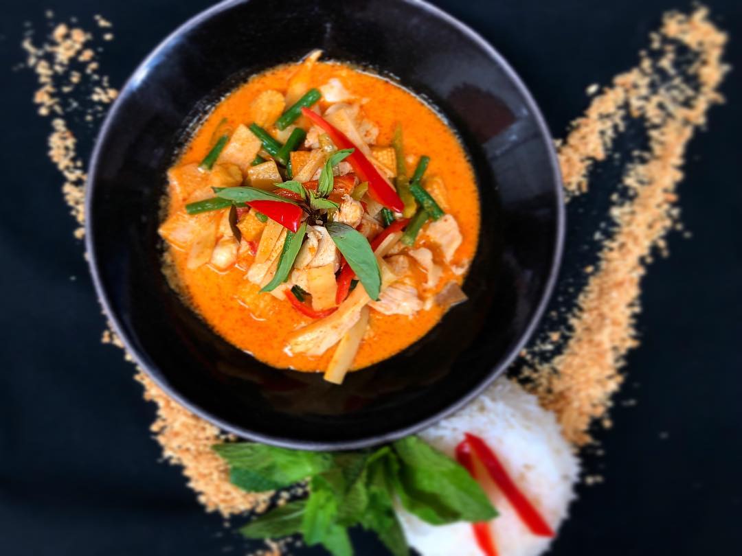 Hovedretterne spænder bredt og tilbyder klassikere som Gang Dang Gai, en stærk rød kokoskarry med stegt kylling og friske grøntsager, samt Pat Thai Gai, stegte nudler med bønnespirer, forårsløg, gulerod, tofu, æg og kylling, toppet med peanutkrymmel og frisk lime. En særlig anbefaling er Massaman Nuur, en specialitet fra det sydlige Thailand, bestående af mørt oksekød i en tamarind- og kokosmælkssauce med kartofler, gulerod og løg, toppet med cashewnødder.