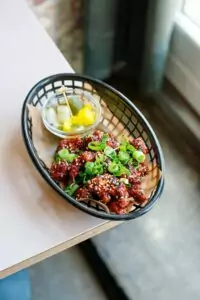 Et af de faste indslag på menuen er deres populære Korean Fried Chicken med en sprød og krydret panering, inspireret af det koreanske køkken. Derudover tilbyder de en tatar, som er en moderne fortolkning af den klassiske ret, tilpasset med unikke smagsnuancer.